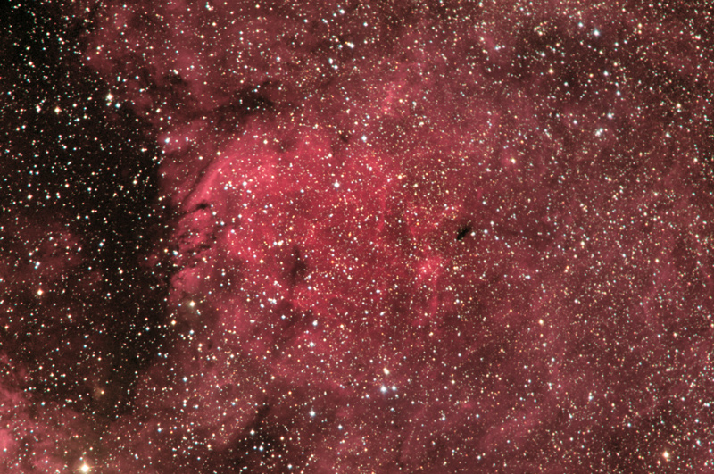 This is a very large nebula that is missed because of the nearby famous nebula Messier 17 or the Swan Nebula. With a wide field of view (maybe three degrees) you can get them both in the same shot. The nebula does very well with a hydrogen-alpha filter to the point that I would recommend using that as a luminance. By taking enough RGB for color, you should be able to produce a very nice color image of this. A larger telescope should be able to pick up the fine detail on the left side where it is brightest.